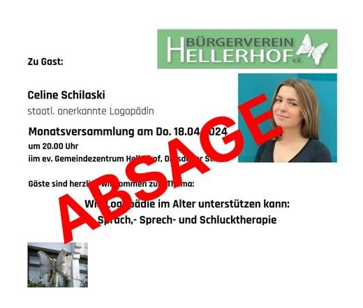 Krankheitsbedingte Absage: Monatsversammlung Bürgerverein Hellerhof am 18. April, 20.00 Uhr