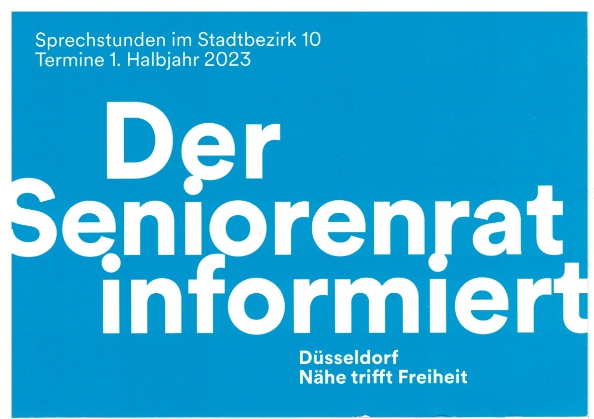 Die Sprechstunde des Seniorenrates im Stadtbezirk 10 (Garath/Hellerhof) findet regelmäßig am letzten Montag des Monats im „zentrum plus“/Diakonie Garath, Fritz-Erler Str. 21 für die Bürger:innen aus Garath und Hellerhof statt. Außerhalb der Sprechstunden sind Ingrid Frunzke unter 016091683079 oder Frunzke_Ingrid@t-online.de und Peter Ries unter 017634557057 oder stadtpolitik.ries@gmail.com, auch über WhatsApp sind wir erreichbar.