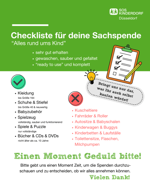 Gerne nehmen wir auch Sachspenden entgegen: Bitte die Checkliste anbei beachten!