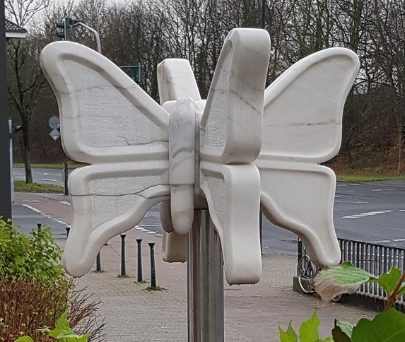 Der Schmetterling symbolisiert die städtebauliche Anlage des Stadtteils Hellerhof seit Beginn der Baumaßnahmen 1976. Der Bildhauer Heinz Sinzig schenkte dem Bürgerverein Hellerhof 1999 einen Schmetterling aus weißem Marmor, der am Hellerhofweg vor der Apotheke in einem Beet steht.